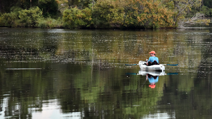 Fishing on the lake at Sesquicentennial State Park.