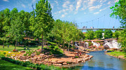 Travelers Rest Active families: make your way to Sunrift Adventures to rent bikes and helmets for the whole family, then pedal the 28-mile Prisma Health Swamp Rabbit Trail, a mostly paved multi-use greenway system that meanders alongside the scenic Reedy River, an old railroad corridor and several city parks. Along the path is Trailblazer Park, where free outdoor movies, live concerts and a farmers market bring locals and visitors together throughout the year. Let kids burn off more energy on the Adventure Park, a nature-themed playground with a double zipline, jungle dome and ADA-accessible features.