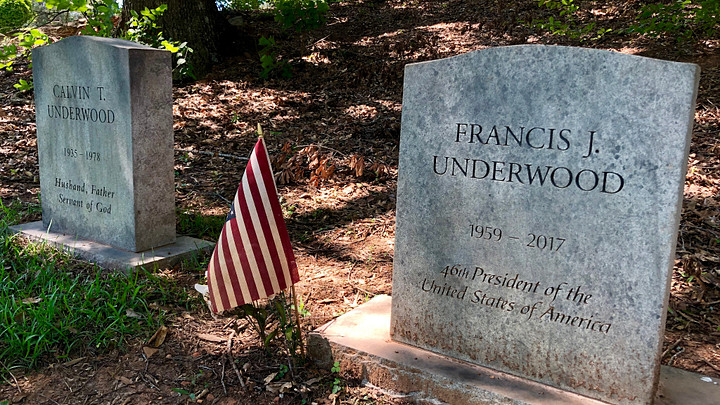 Underwood’s headstone lies next to his father’s final resting place. Fans of the series will remember the indelicate display of disrespect the president showed to his father when he visited Calvin T. Underwood’s gravesite shortly after he was sworn in. You’ll find the two monuments in the shade of a tree on the perimeter of the cemetery.