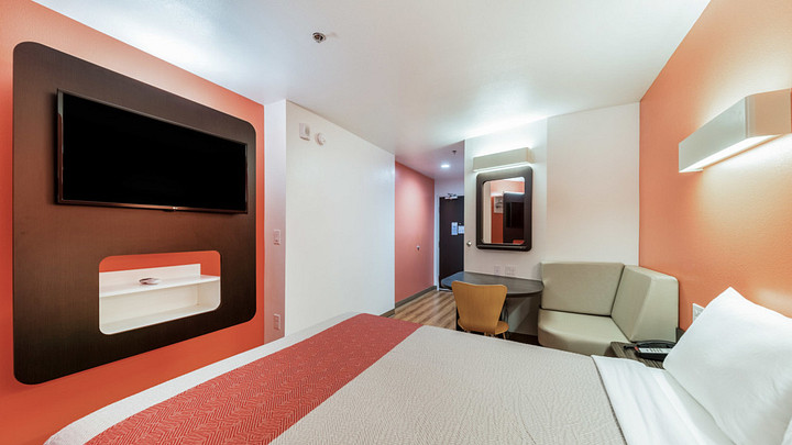 The renovated Motel 6 in Simpsonville offers bright rooms with modern furnishings.