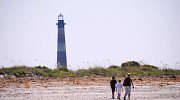 Visitors to Folly Beach can get a pretty good look at the historic Morris Island Lighthouse from the northeastern end of the barrier island. The 150-foot brick tower - built in 1876 to help guide sailors into Charleston Harbor - lies across Lighthouse Inlet about a half-mile away.